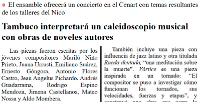 Las piezas fueron escritas por los jóvenes compositores Marilín Niño, Prieto, Juana Urruti, Emiliano Suñez, Ernesto Góngora, Antonio Flores Castro, Jean Angelus Pichardo, Andrés Guadarrama, Rodrigo Espino Mendoza, Jimena Castellanos, Mateo Nosas y Aldo Monibera.