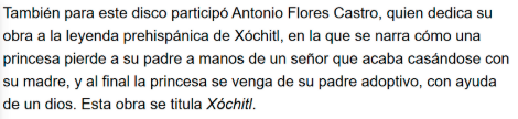 También para este disco participó Antonio Flores Castro, quien dedica su obra a la leyenda prehispánica de Xóchil, en la que se narra cómo una princesa pierde a su padre a manos de un señor que acaba casándose con su madre.